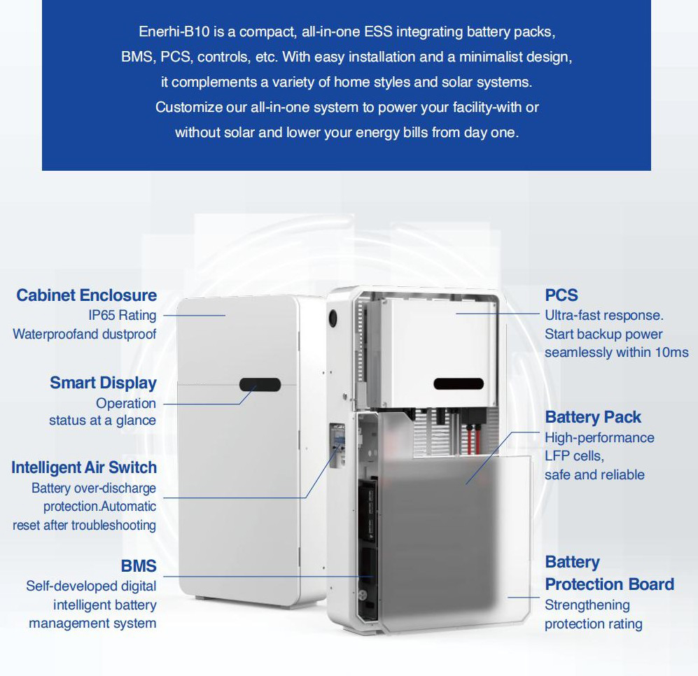 Plug and Play. Powering Your Home by Pressing One Single Button. This is a compact, all-in-one ESS integrating battery packs, BMS, PCS, controls, etc. With easy installation and a minimalist design, it complements a variety of home styles and solar systems.